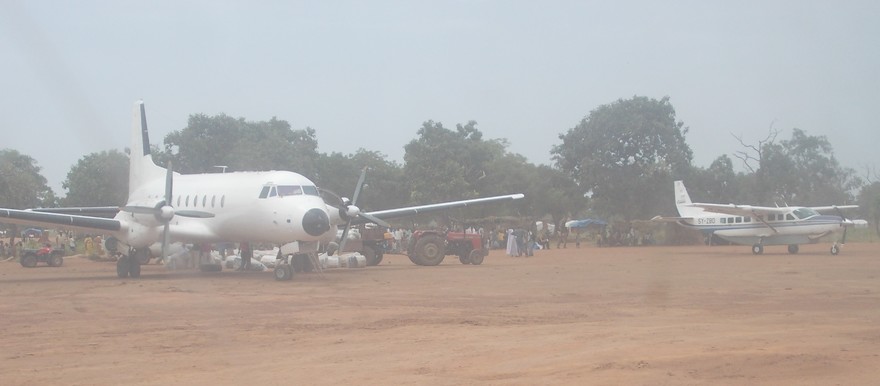 In the fall season it is almost impossible to deliver these goods over land; the road southward via Bentiu is impassable at present. Due to the circumstances, aid organizations have arranged for some 12 air drops per day. The operation includes airdrops as well as landings to bring in medicines and staff for humanitarian aid organizations. The airdrops result in minor losses to some of the incoming goods.