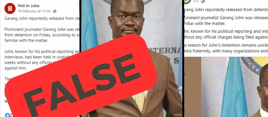 A post has been circulating across Facebook with claims that a South Sudanese Journalist, Garang John, has been released from detention; the post is false. Garang John is still in custody, according to his family members.
