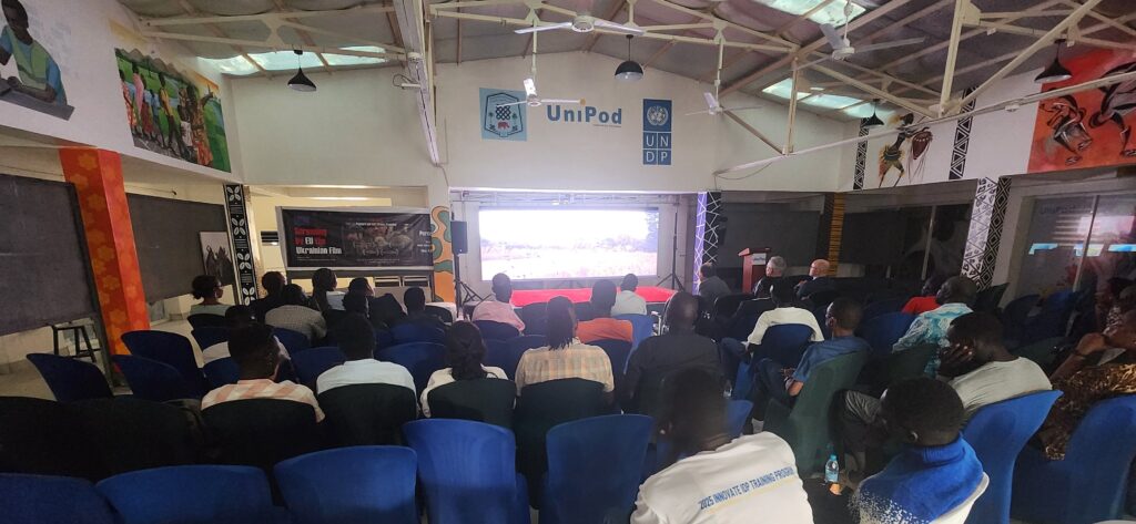 The event, held at the University of Juba, combined culture and discussion, using the film’s portrayal of artists persevering during wartime to reflect on conflict, resilience and peace in both Ukraine and South Sudan.