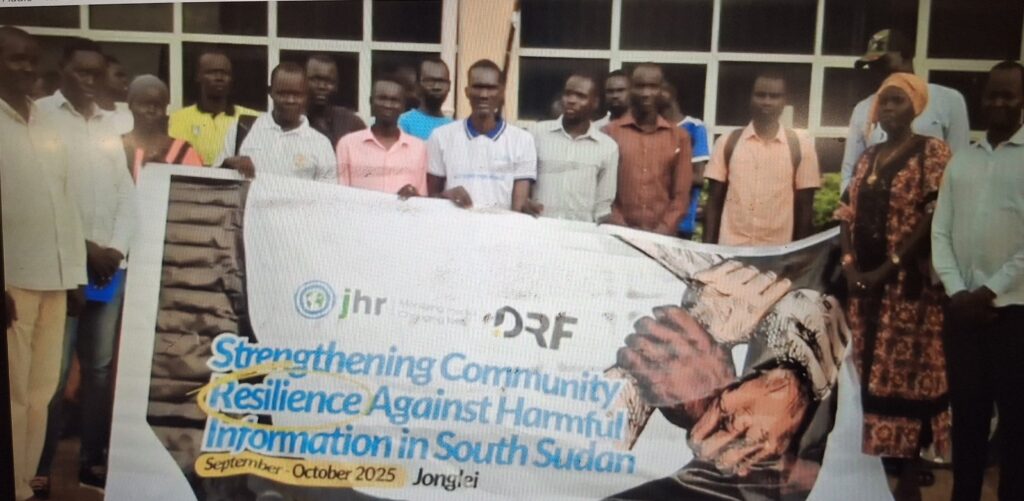 The organization Digital Rights Frontlines, in partnership with Journalists for Human Rights, held the media literacy training as part of a multi-state project titled “Strengthening Community Resilience Against Harmful Information in South Sudan.”