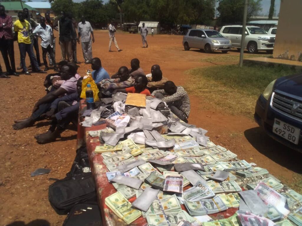 "The National Security Service announces the arrests of 14 criminals with fake 93 million dollars and 400,000 South Sudanese Pounds. The National Security Service and internal security bureau hereby inform the public that today (Nov 4th, 2021) the operation division has apprehended criminals in possession of various counterfeit monies and other illegal possessions," NSS spokesperson John David Kumuri told reporters at the National Security Division. "The arrest is ensured as a result of the first surveillance and counter operation that was launched by the operation division surveillance team."