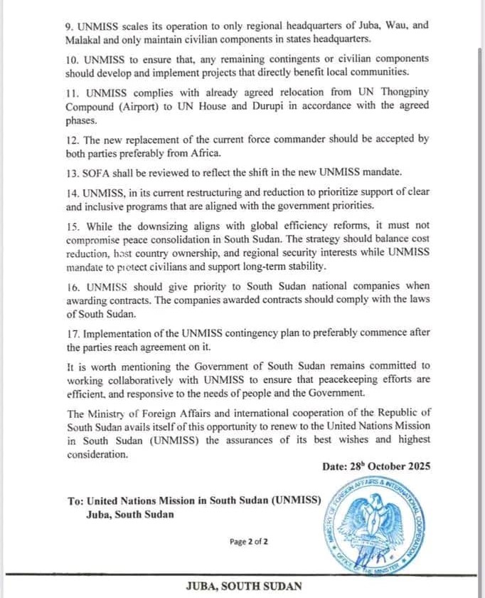 The directive, outlined in a note verbale from South Sudan’s Ministry of Foreign Affairs dated 28th October 2025, represents the most significant challenge to date for one of the UN’s largest peacekeeping operations. If implemented, the demands would fundamentally reshape the mission’s ability to operate across the world’s youngest nation.